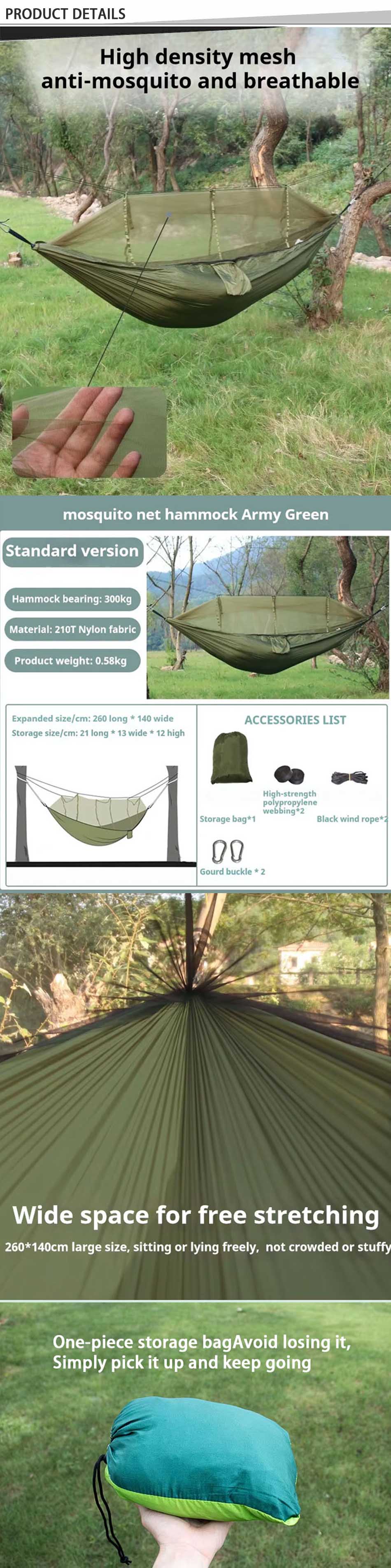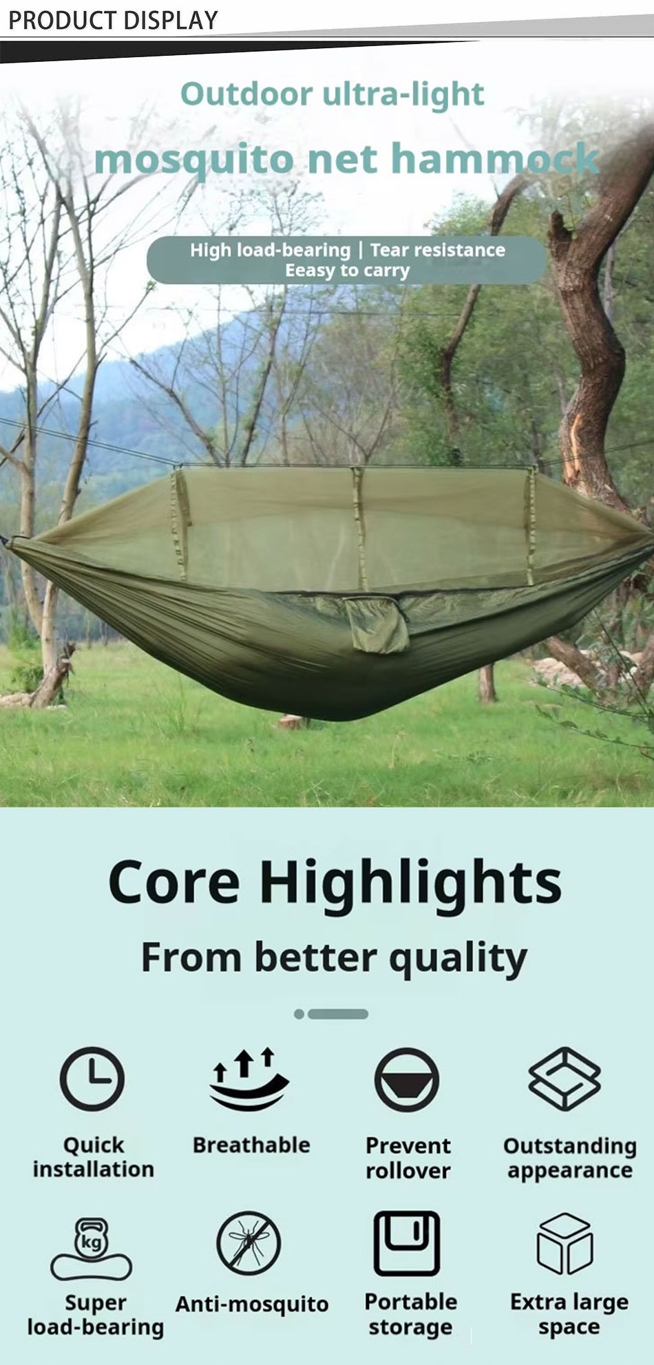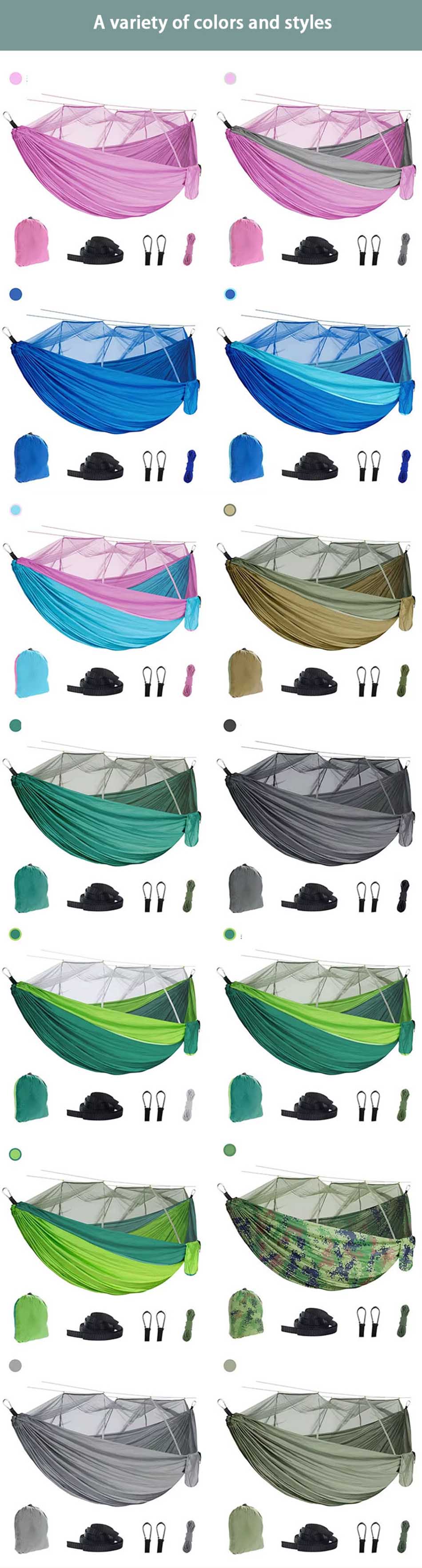 นี้เป็นรุ่นอัพเกรดของเปลญวนมุ้ง, มุ้งกันยุงและเปลญวนถูกรวมเข้าด้วยกัน, ไม่จำเป็นต้องมีขั้นตอนการติดตั้งที่ซับซ้อน.
