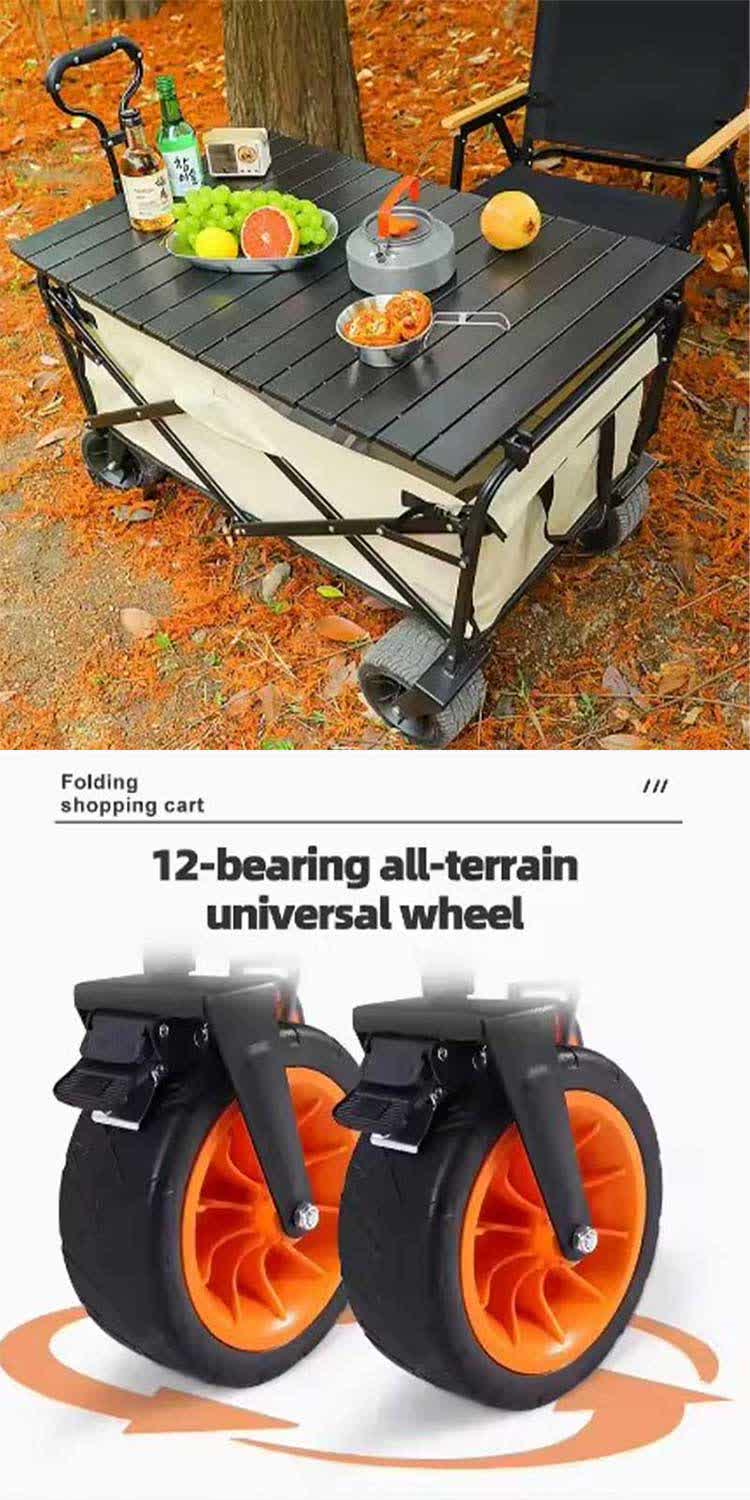 แบรนด์: โรงงาน ANHUI FEISTEL เกี่ยวข้องกับการผลิต: OEM และ ODM สินค้า:รถเข็นสำหรับตั้งแคมป์กลางแจ้งแบบพับได้สำหรับงานหนักพร้อมล้อสากล ที่จับปรับได้ และที่เก็บของขนาดกะทัดรัด เหมาะสำหรับภูมิประเทศที่หลากหลายและขนส่งของหนักได้ง่าย