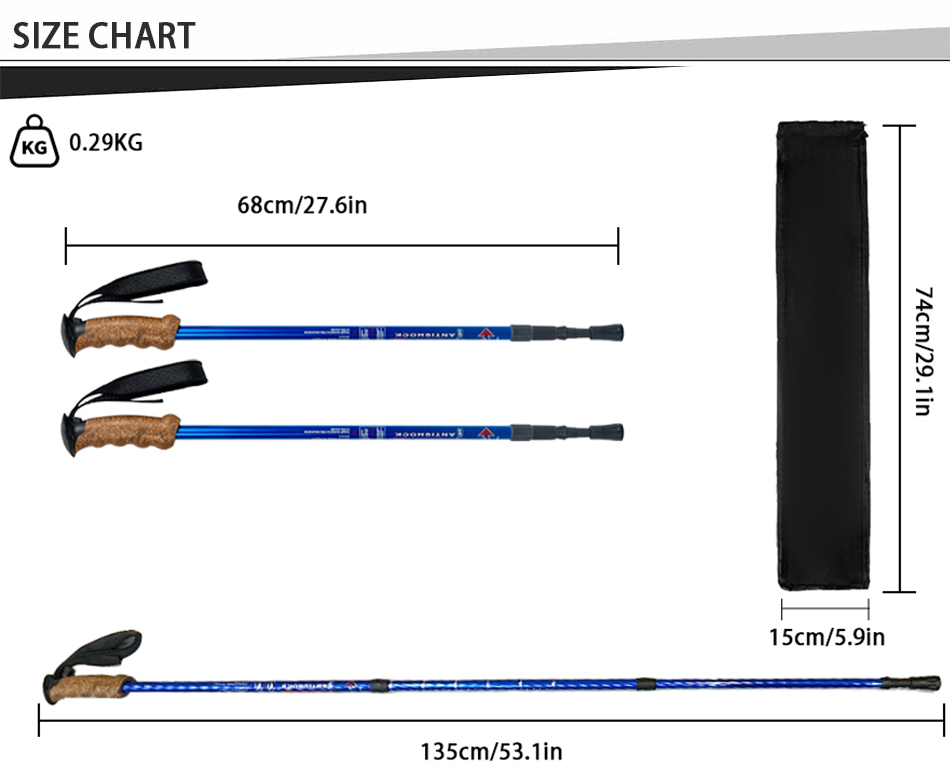 [ขนาดกะทัดรัดและเป็นมิตรกับการเดินทาง ไม้เท้าเดินป่า [ขนาดกะทัดรัดและเป็นมิตรกับการเดินทาง สามารถจัดเก็บในกระเป๋าเดินทางได้อย่างง่ายดาย, กระเป๋าเป้สะพายหลังและกระเป๋าสัมภาระ. ไม้เท้าเดินป่ารุ่นนี้ยังมาพร้อมกับอุปกรณ์ป้องกันปลายยางที่จัดเก็บง่าย, ขั้วต่อขั้วและตะกร้าโคลน. [รุ่นใหม่และปรับปรุง! ไม้ค้ำสำหรับการเทรคกิ้งเพื่อการเทรคกิ้งมาพร้อมสายรัดบุนวมเพื่อความสบายสูงสุดและการยึดเกาะตามหลักสรีรศาสตร์. ไม่ต้องกังวลว่าเสาเทรคกิ้งจะตกลงมาอีก.