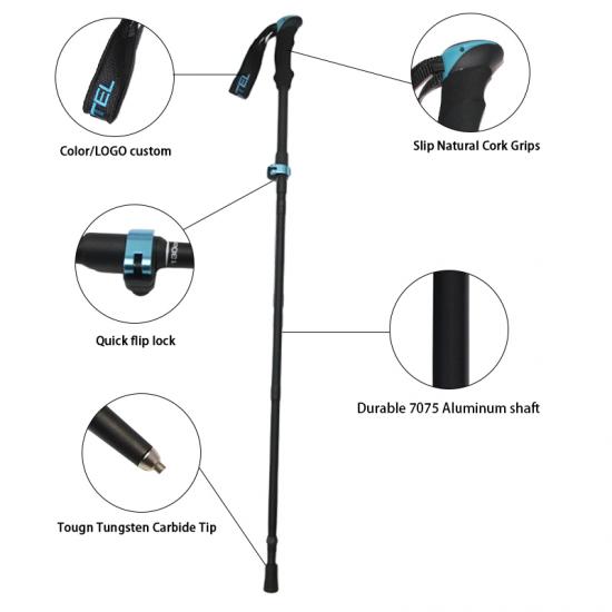 feistel ขายส่งอลูมิเนียมอัลลอยด์ไม้ก๊อก EVA จับล็อคอย่างรวดเร็วพับเสาเดินป่า