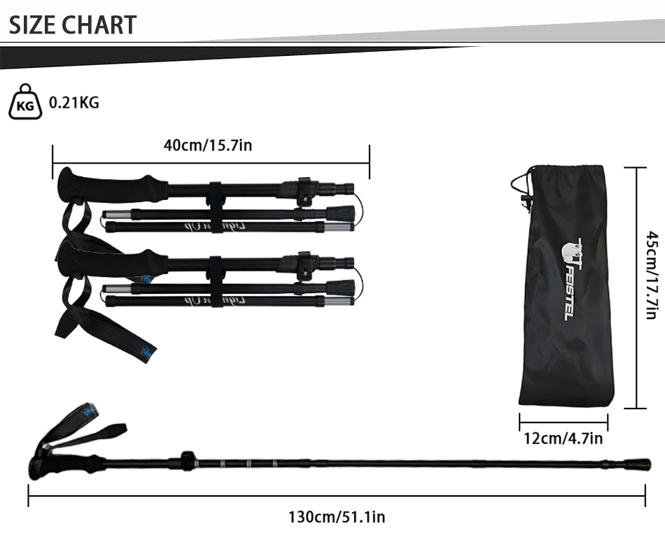 ไม้เท้าเดินป่าอลูมิเนียม 7075 น้ำหนักเบา รุ่นขายดีที่สุด แบบยืดหดและพับได้ :