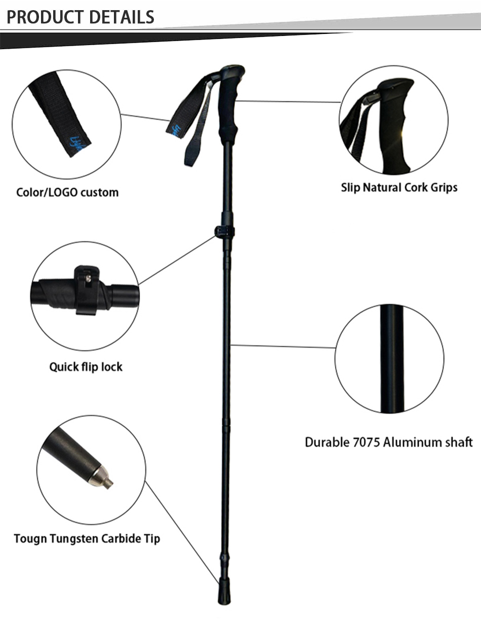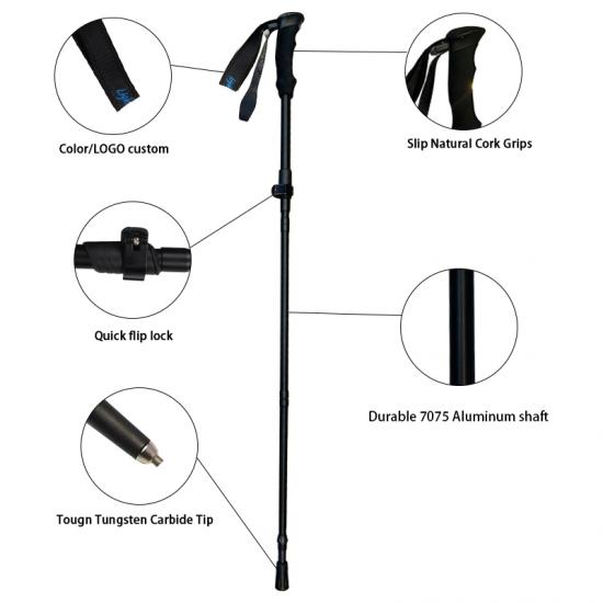ผลิตภัณฑ์ : ไม้เท้าเดินป่าอะลูมิเนียม 7075 น้ำหนักเบาที่ขายดีที่สุด มีดีไซน์แบบยืดหดได้และพับได้ ให้ความทนทานสูง ปรับระดับได้ง่าย และรองรับได้อย่างมั่นคงสำหรับการเดินป่า การแบกเป้ และการผจญภัยกลางแจ้ง