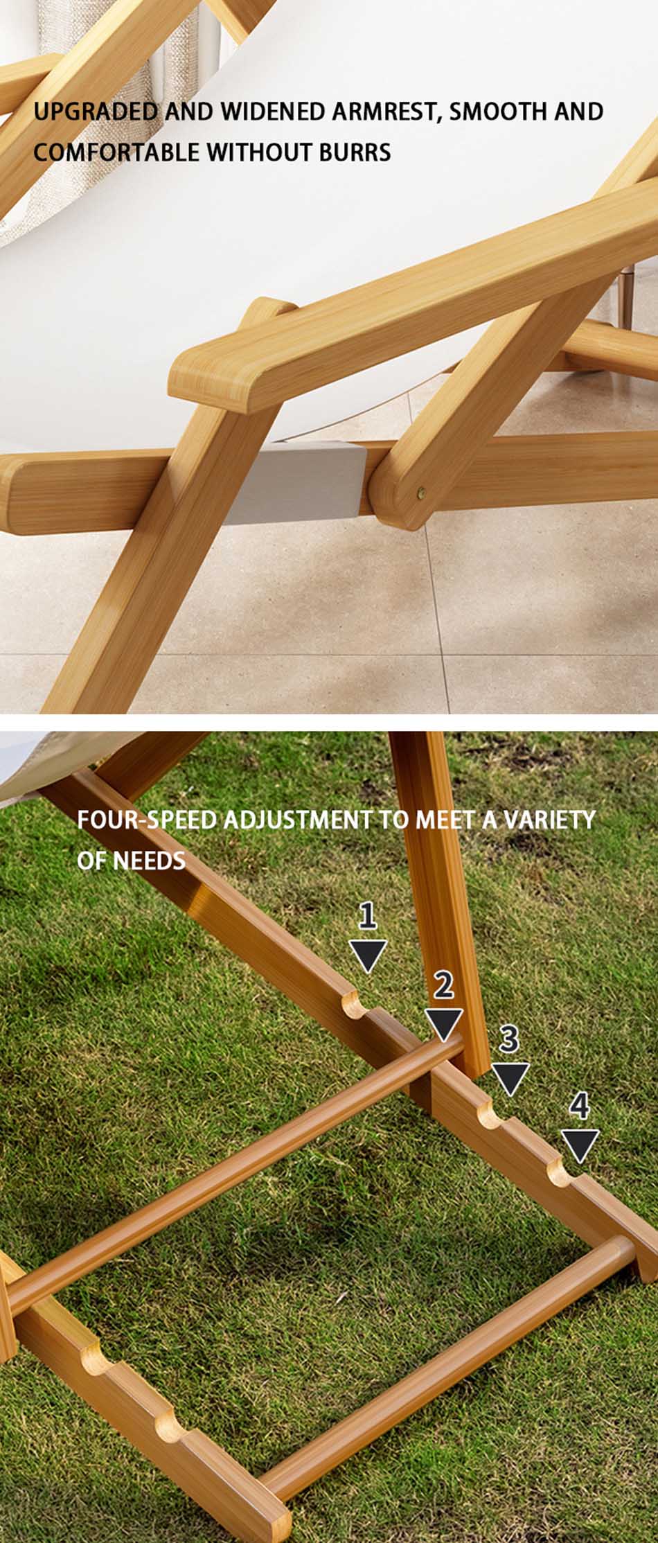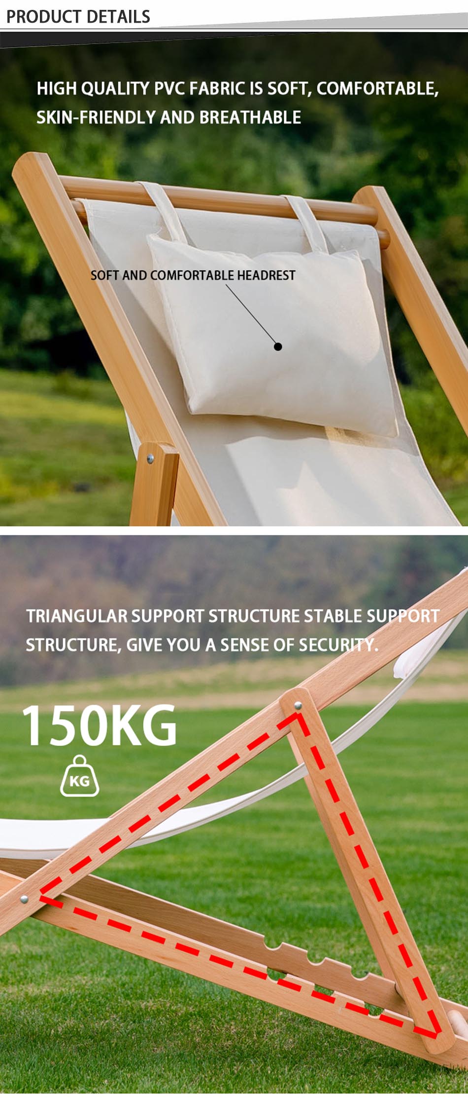 ผลิตภัณฑ์ - เก้าอี้เลานจ์ไม้พับได้สำหรับตั้งแคมป์ตัวนี้มีโครงที่แข็งแรง การออกแบบเอนตามหลักสรีรศาสตร์ และโครงสร้างพับกะทัดรัด เหมาะสำหรับการพักผ่อนที่ชายหาด พื้นที่ตั้งแคมป์ หรือสนามหลังบ้าน