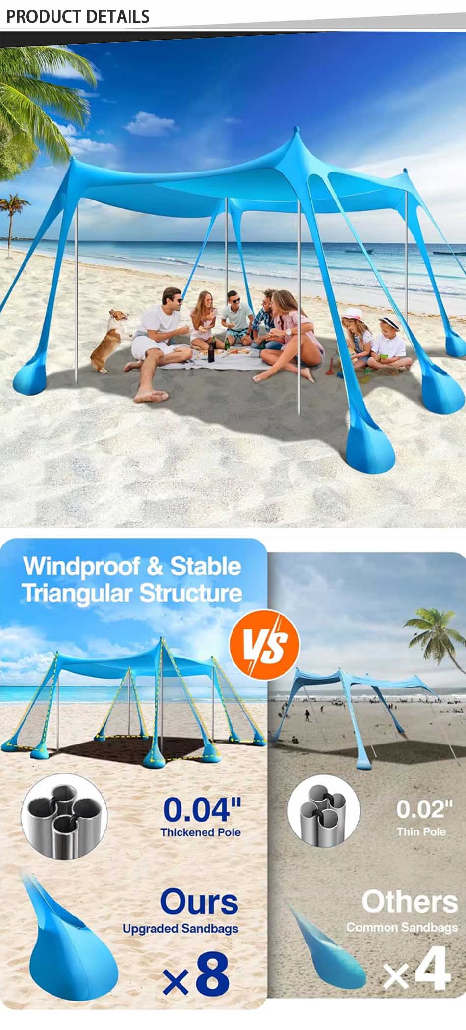 ผลิตภัณฑ์ - หลังคาบังแดดสำหรับการตั้งแคมป์นี้มีคุณสมบัติป้องกันรังสี UV ได้อย่างน่าเชื่อถือและระบายอากาศได้ดี จึงเหมาะอย่างยิ่งสำหรับการเป็นหลังคาบังแดดแบบพกพาสำหรับการพักผ่อนกลางแจ้งและป้องกันแสงแดด