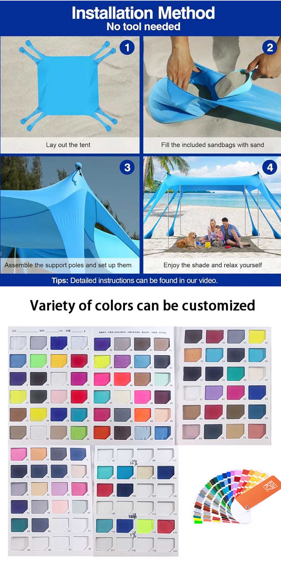 ป๊อปอัพเต็นท์ชายหาดม่านบังแดดยูวีเสื่อเต็นท์ป้องกันรังสียูวีขนาดใหญ่ที่กำหนดเอง