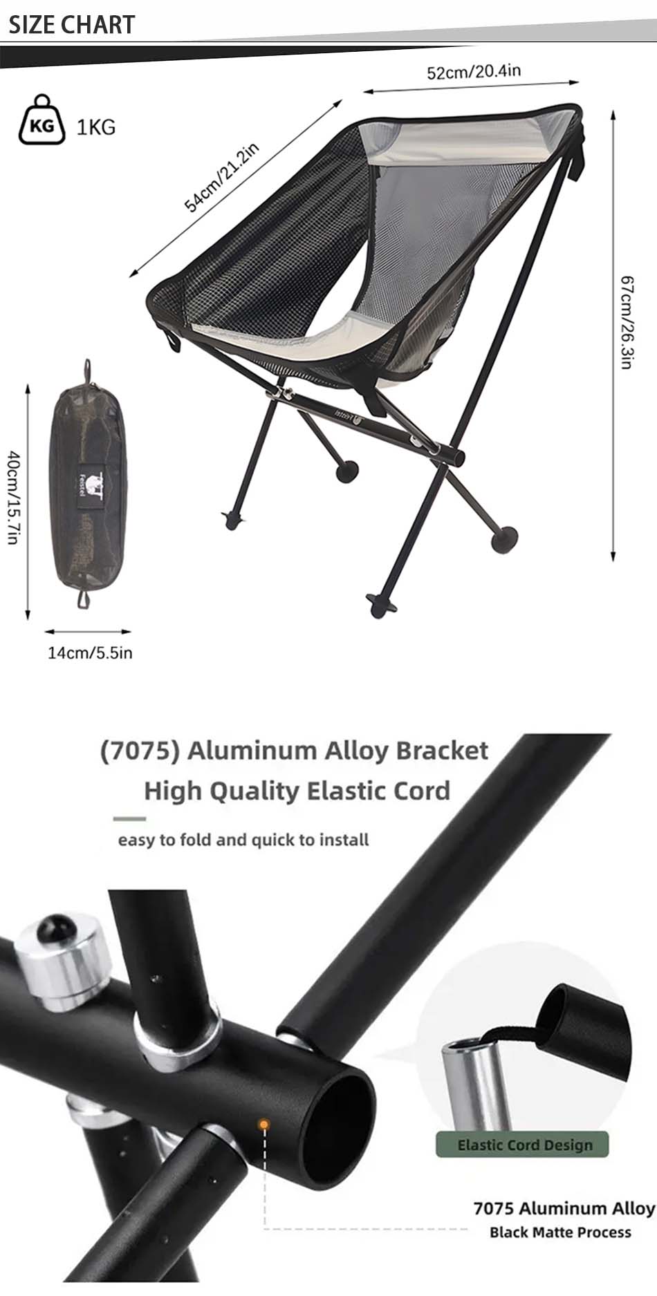 เก้าอี้ค่ายอลูมิเนียมแบบพกพาน้ำหนักเบาเก้าอี้ตั้งแคมป์ดวงจันทร์กลางแจ้ง
