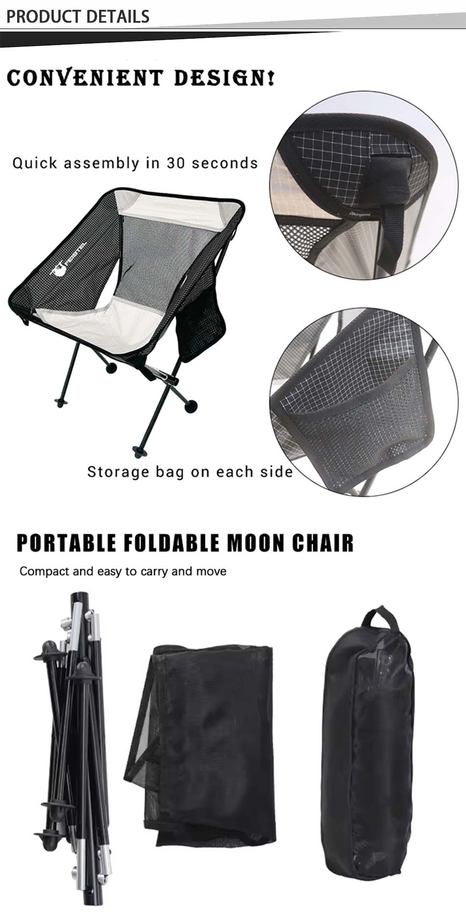 เก้าอี้พับเหล็กน้ำหนักเบาแบบสั่งทำ เก้าอี้ตั้งแคมป์กลางแจ้งแบบ Moon Chair