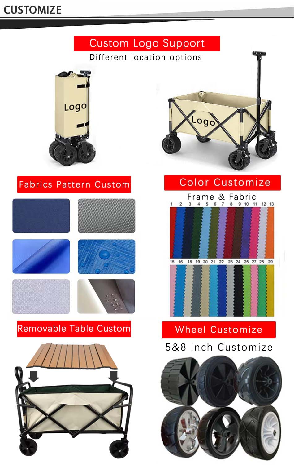 แบรนด์: โรงงาน ANHUI FEISTEL เกี่ยวข้องกับการผลิต: OEM และ ODM สินค้า:รถเข็นพับได้แข็งแรงทนทานเหมาะสำหรับการตั้งแคมป์และปิกนิก โครงสร้างแข็งแรงทนทาน ล้อสำหรับทุกพื้นที่ และพกพาสะดวกสำหรับการผจญภัยกลางแจ้ง