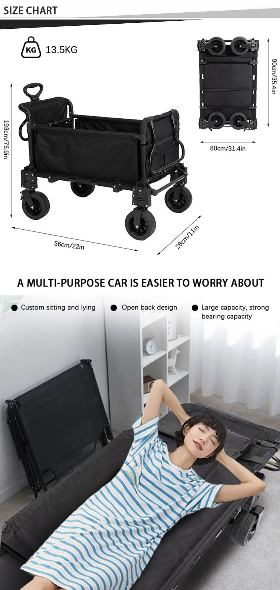 ออกแบบมาเพื่อความสะดวกสูงสุดมันทำหน้าที่เป็นรถเข็นช็อปปิ้งเกวียนยูทิลิตี้ที่ยุบได้และแม้แต่เตียงโซฟาทำให้เหมาะสำหรับความต้องการที่หลากหลาย   เฟรมที่แข็งแรงช่วยให้มั่นใจได้ถึงความทนทานและความเสถียรในขณะที่การออกแบบที่พับเก็บได้ช่วยให้สามารถจัดเก็บและขนส่งได้ง่าย