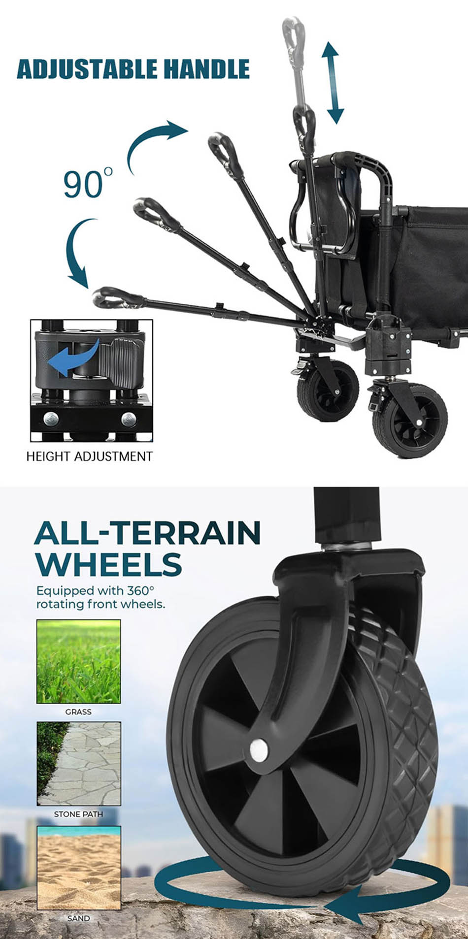 แบรนด์: โรงงาน ANHUI FEISTEL เกี่ยวข้องกับการผลิต: OEM และ ODM สินค้า:รถเข็นสำหรับตั้งแคมป์กลางแจ้งแบบพับได้สำหรับงานหนักพร้อมล้อสากล ที่จับปรับได้ และที่เก็บของขนาดกะทัดรัด เหมาะสำหรับภูมิประเทศที่หลากหลายและขนส่งของหนักได้ง่าย