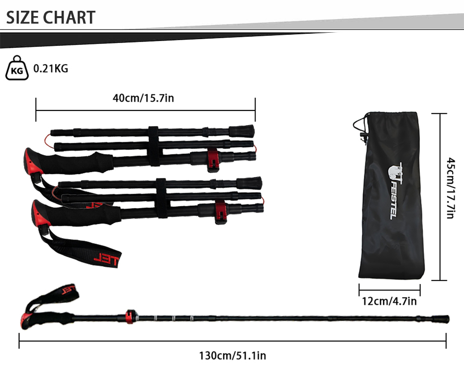 ไม้เท้าเดินป่าคาร์บอนน้ำหนักเบาแบบพับได้