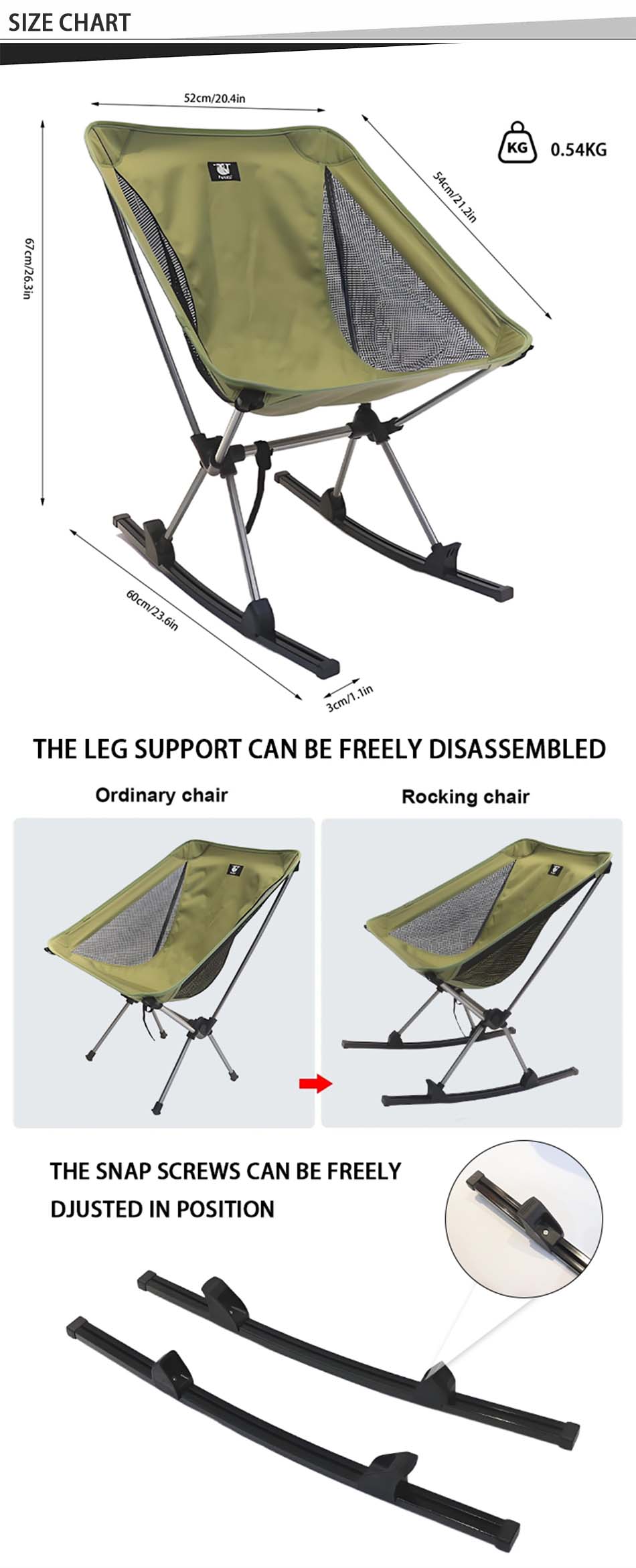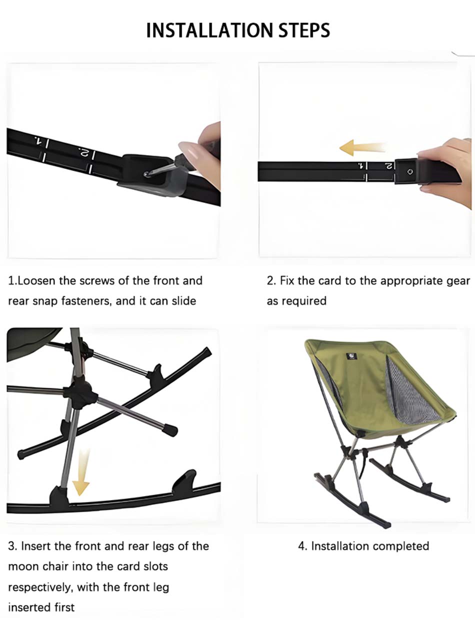ชุดเก้าอี้โยก Feistel Camp Chair Two Set Rocking Runners Accessory เป็นส่วนเสริมระดับพรีเมียมที่ออกแบบมาเพื่อเปลี่ยนเก้าอี้แคมป์มาตรฐานของคุณให้กลายเป็นเก้าอี้โยกที่สะดวกสบาย ช่วยเพิ่มความผ่อนคลายและความสะดวกสบายในระหว่างกิจกรรมกลางแจ้ง เช่น การตั้งแคมป์ การปิกนิก การปิกนิกในสวนหลังบ้าน มาพร้อมดีไซน์ที่ทนทานและน้ำหนักเบาที่ช่วยให้ใช้งานได้ยาวนานและพกพาสะดวก ผลิตจากวัสดุคุณภาพสูงที่ให้ความเสถียรเป็นเลิศและการโยกที่ราบรื่นบนภูมิประเทศต่างๆ รวมถึงหญ้า ดิน และกรวด พร้อมระบบติดตั้งโดยไม่ต้องใช้เครื่องมือที่ช่วยให้ติดเข้ากับขาเก้าอี้ที่เข้ากันได้อย่างรวดเร็วและไม่ต้องใช้แรง ทำให้เหมาะอย่างยิ่งสำหรับผู้ที่ชื่นชอบกิจกรรมกลางแจ้งที่มองหาความสบายมากขึ้นโดยไม่ต้องเสียสละความสะดวกสบาย และโครงสร้างแบบถอดได้ขนาดกะทัดรัดช่วยให้ใส่ในกระเป๋าอุปกรณ์สำหรับการเดินทางได้อย่างพอดี ให้การอัปเกรดตามหลักสรีรศาสตร์ที่หลากหลายซึ่งช่วยเพิ่มประสบการณ์การนั่งกลางแจ้งด้วยการเคลื่อนไหวที่นุ่มนวลและควบคุมได้และความสบายที่เพิ่มมากขึ้น