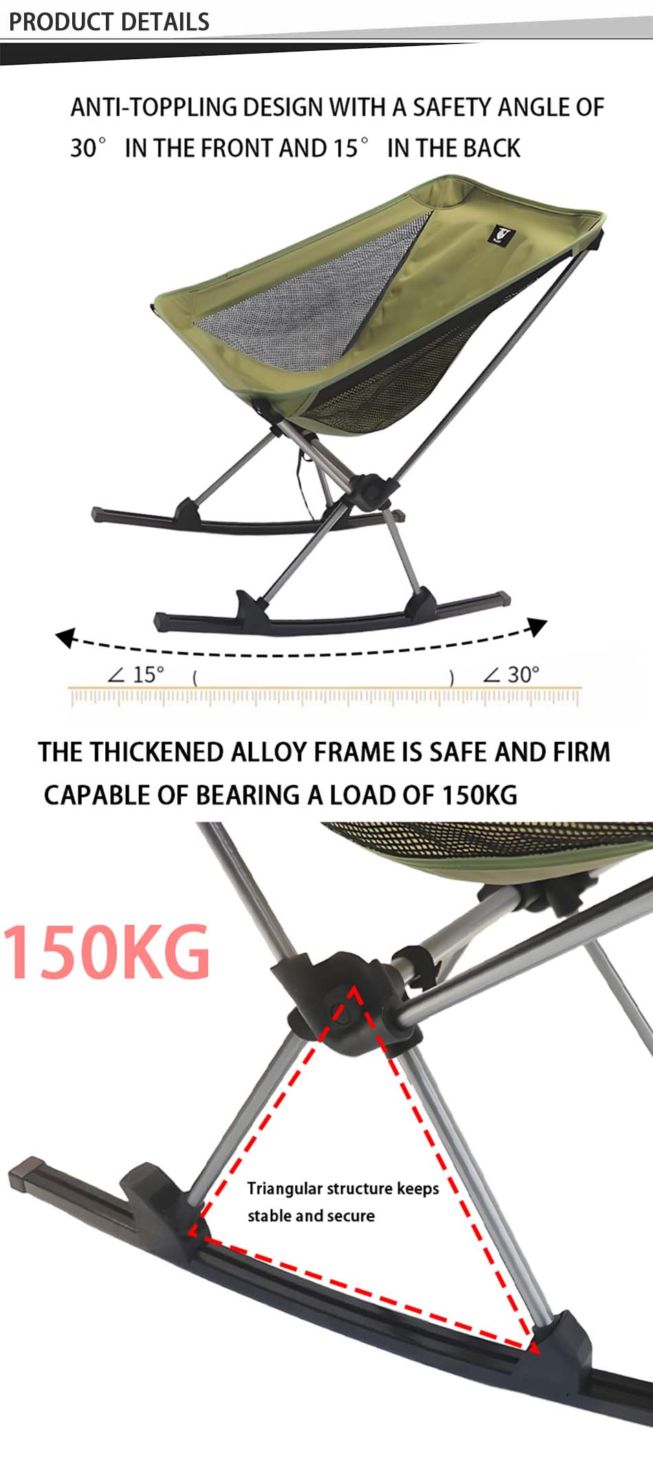 เก้าอี้ตั้งแคมป์แบบ Heavy Duty Rocking Moon แบบพับได้แบบพกพา