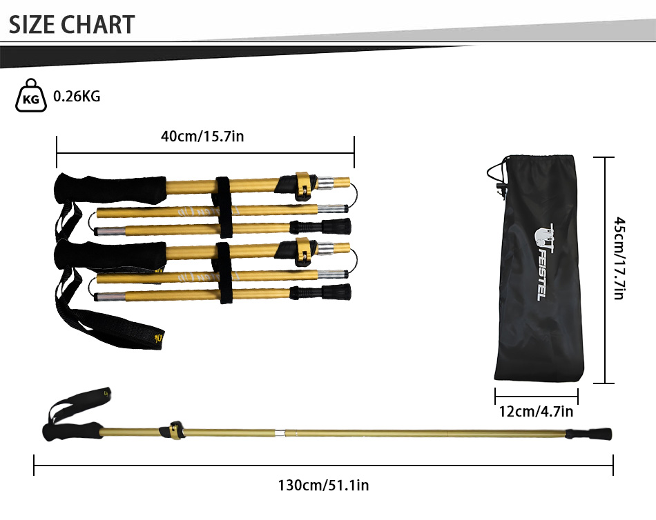 ผลิตภัณฑ์ : ไม้เท้าพับได้อเนกประสงค์ทำจากอลูมิเนียมอัลลอยด์ 5 ท่อน มีด้ามจับ EVA ที่ให้ความสบาย น้ำหนักเบา ทนทาน และพกพาสะดวก ให้การสนับสนุนที่เชื่อถือได้สำหรับการปีนเขา เดินป่า และการผจญภัยกลางแจ้ง
