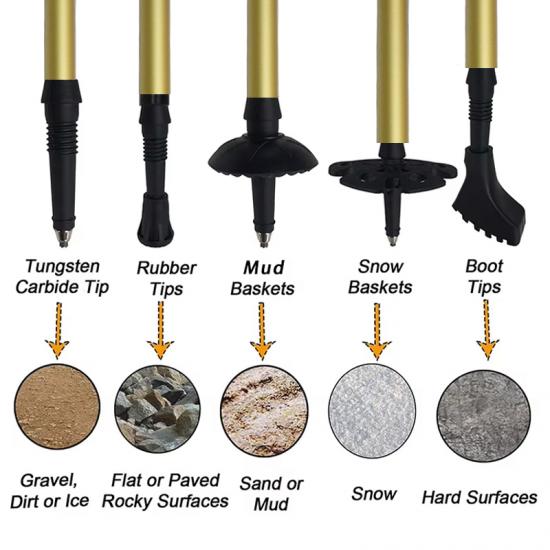 อเมซอน ขายร้อน OEM ขายส่งเบาอลูมิเนียมปรับปีนเขาเดินป่าไม้เท้าเดินป่าคาร์บอน pole