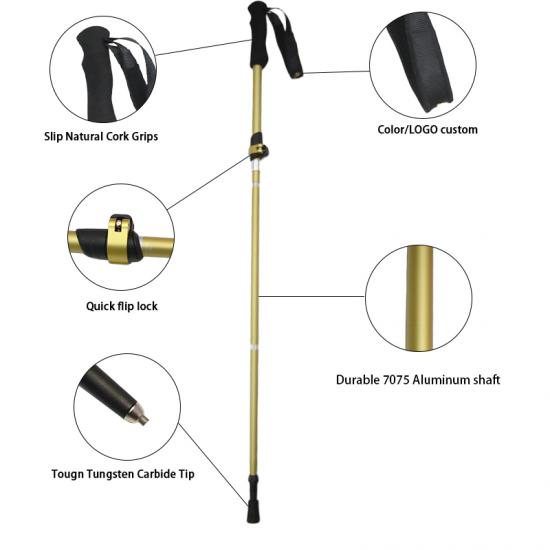 feistel ขายส่งอลูมิเนียมอัลลอยด์ไม้ก๊อก EVA จับล็อคอย่างรวดเร็วพับเสาเดินป่า
