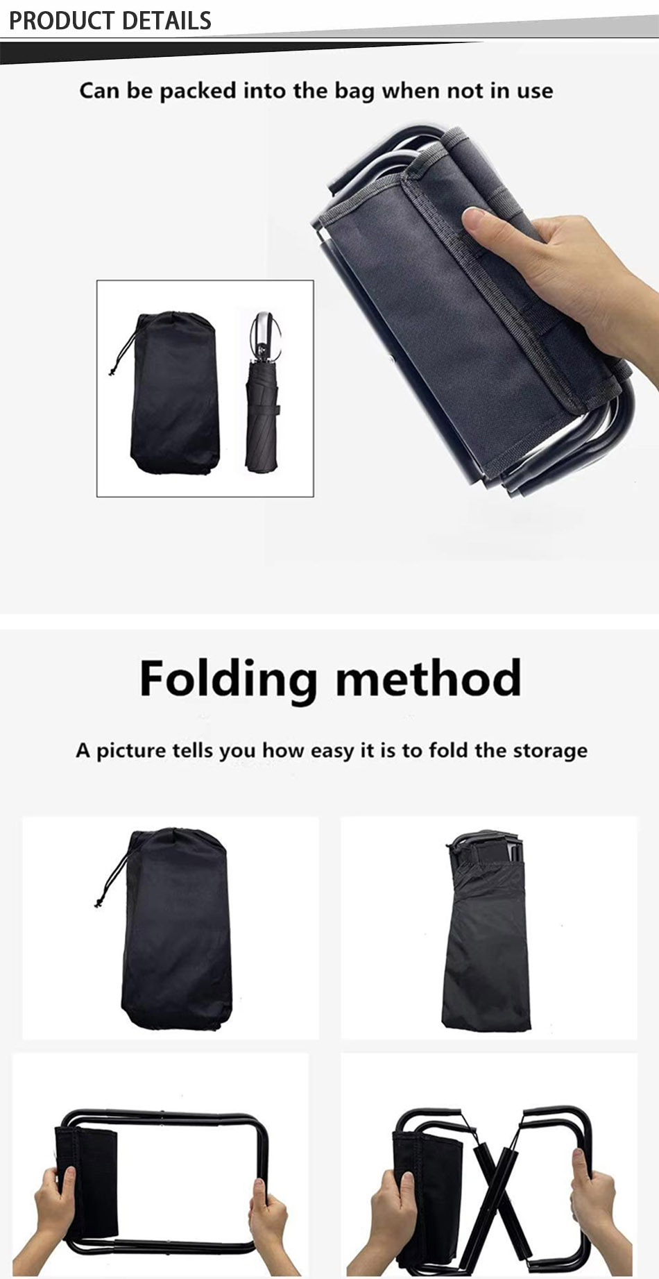 ผลิตภัณฑ์ - เก้าอี้ตั้งแคมป์ที่ผลิตจากเหล็กกันน้ำที่มีความแข็งแรงสูงนี้มีน้ำหนักเบา พับได้ และพกพาสะดวก ให้ความทนทานและสะดวกสบายสำหรับการเดินทางไปชายหาด การตั้งแคมป์ การเดินป่า การตกปลา และการผจญภัยกลางแจ้ง