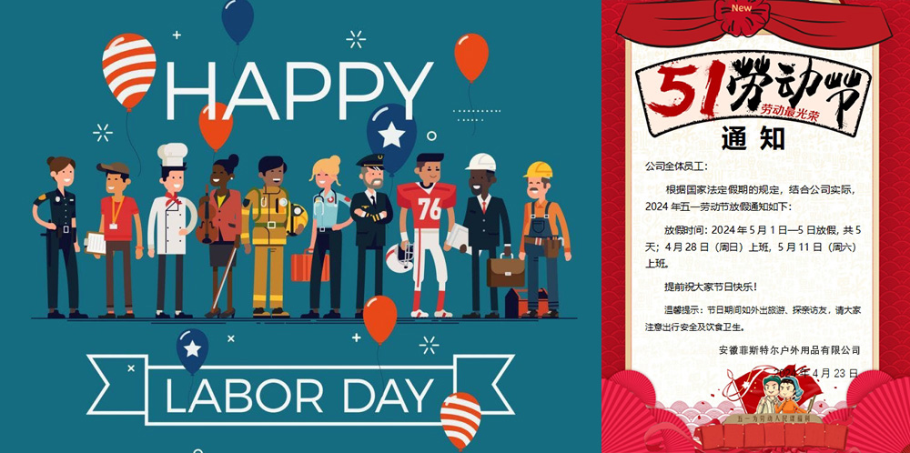 Anhui Feistel Outdoor Co., Ltd. จะมีวันหยุด 5 วันตั้งแต่วันที่ 1 พฤษภาคมถึง 5 พฤษภาคม
