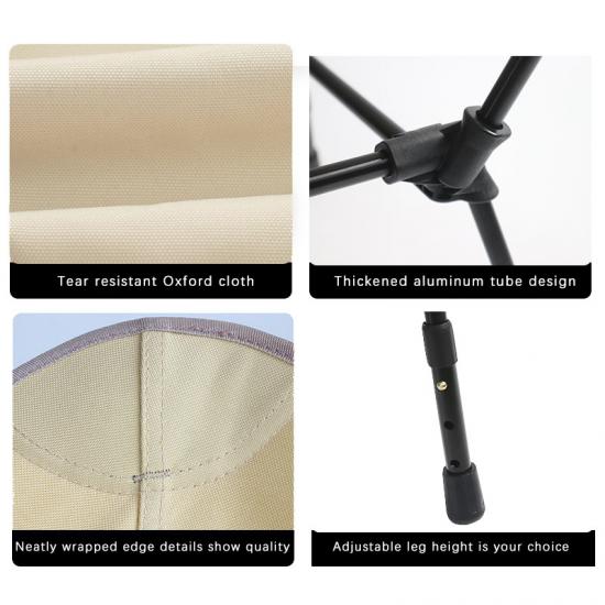 ยี่ห้อ - โรงงาน ANHUI FEISTEL การผลิตที่เกี่ยวข้อง - โออีเอ็ม และ โอดีเอ็ม ผลิตภัณฑ์ - เก้าอี้พับสำหรับตั้งแคมป์กลางแจ้งโครงอลูมิเนียมนี้มีพนักพิงที่ปรับได้ มีน้ำหนักเบาแต่แข็งแรง ให้ความสบายในการพกพาไปตั้งแคมป์ ทริปชายหาด ปิกนิก และพักผ่อนกลางแจ้ง