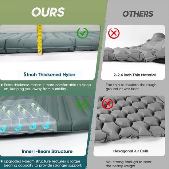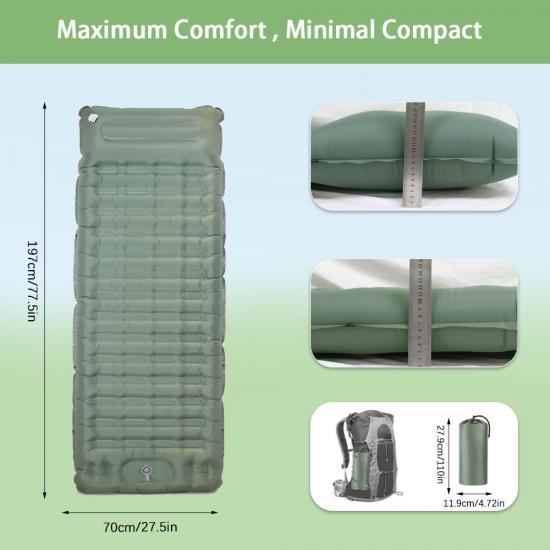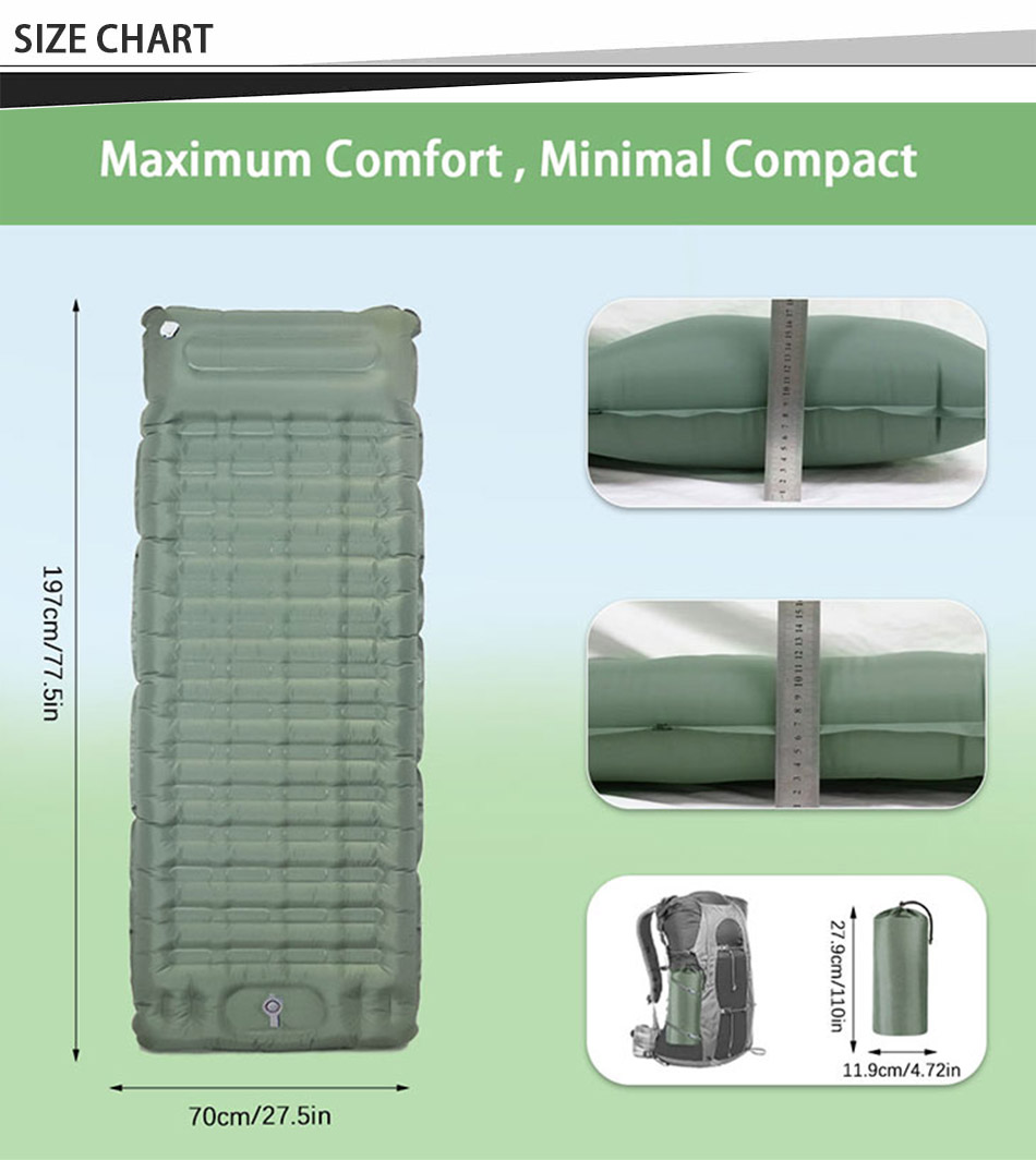 ผลิตภัณฑ์ - แผ่นรองนอนแบบสูบลมสำหรับการตั้งแคมป์แบบน้ำหนักเบานี้ให้ความสบายและการรองรับสำหรับการผจญภัยกลางแจ้ง ทำให้เป็นแผ่นรองนอนสำหรับการเดินทางที่สมบูรณ์แบบสำหรับการเดินป่า ตั้งแคมป์ หรือทริปแบกเป้