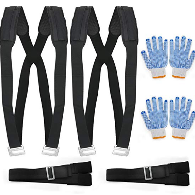 The moving strap is made from PP.  1 set moving strap includes 2 seat belts and 2 adjustable shoulder straps, and 2 soft shoulder pads, and two pairs of gloves
