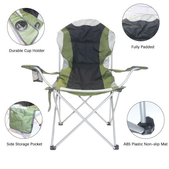 ผลิตภัณฑ์ : เก้าอี้พับโลหะแบบพกพาพร้อมที่วางแขนเหมาะสำหรับการตั้งแคมป์ชายหาดกลางแจ้งให้ความทนทานความสะดวกสบายและตัวเลือกโลโก้ที่ปรับแต่งได้สำหรับสัมผัสส่วนบุคคล