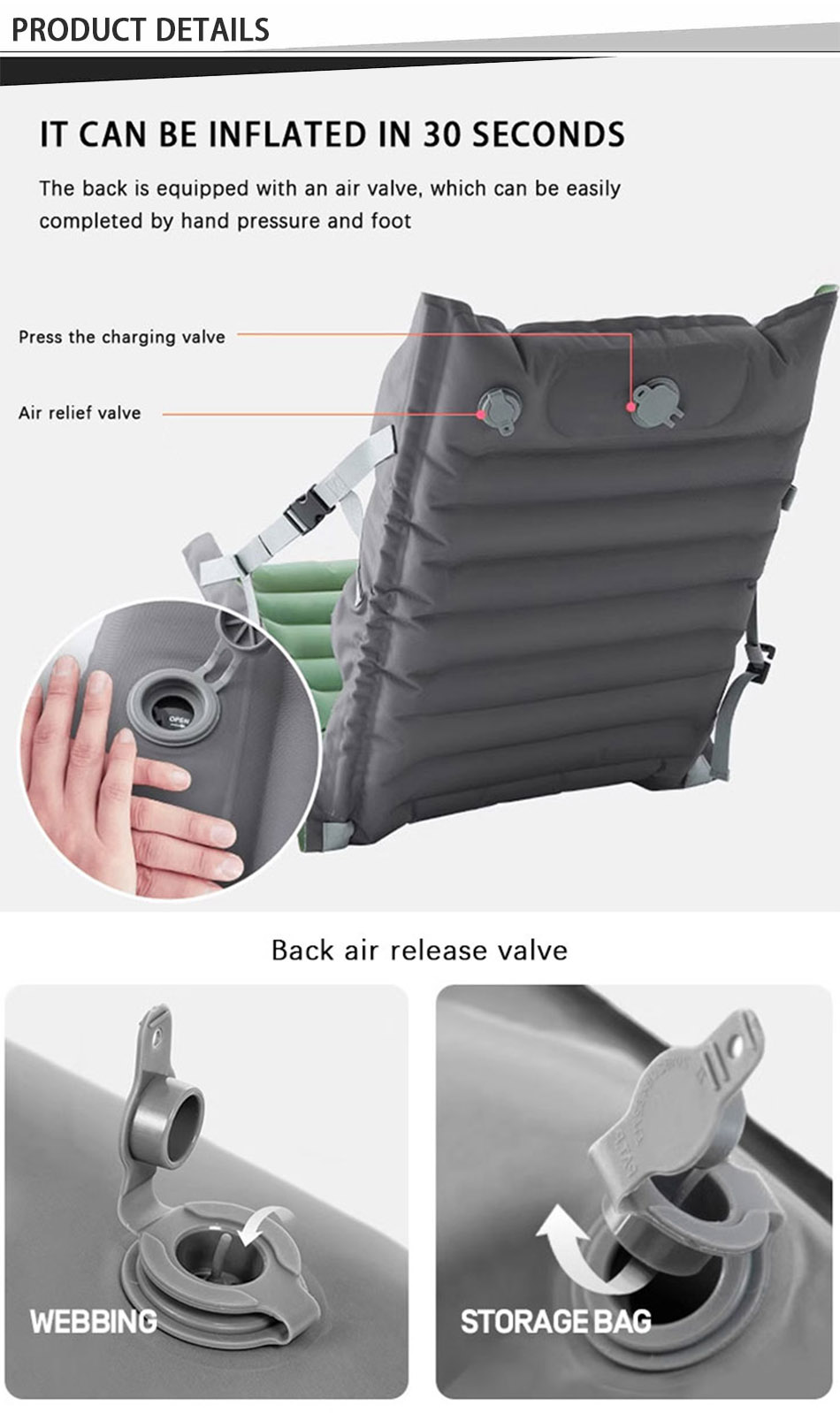 เบาะรองนอนแบบพกพาสำหรับตั้งแคมป์กลางแจ้ง ปรับมุมได้ ชายหาด สบายๆ พร้อมเก้าอี้ลม เบาะรองนอน:
