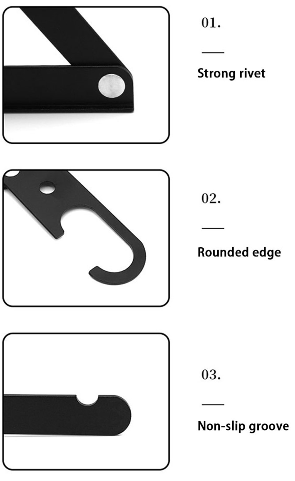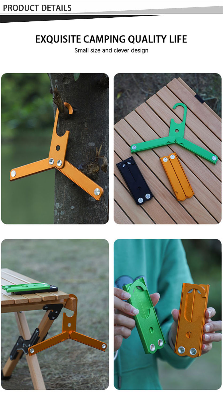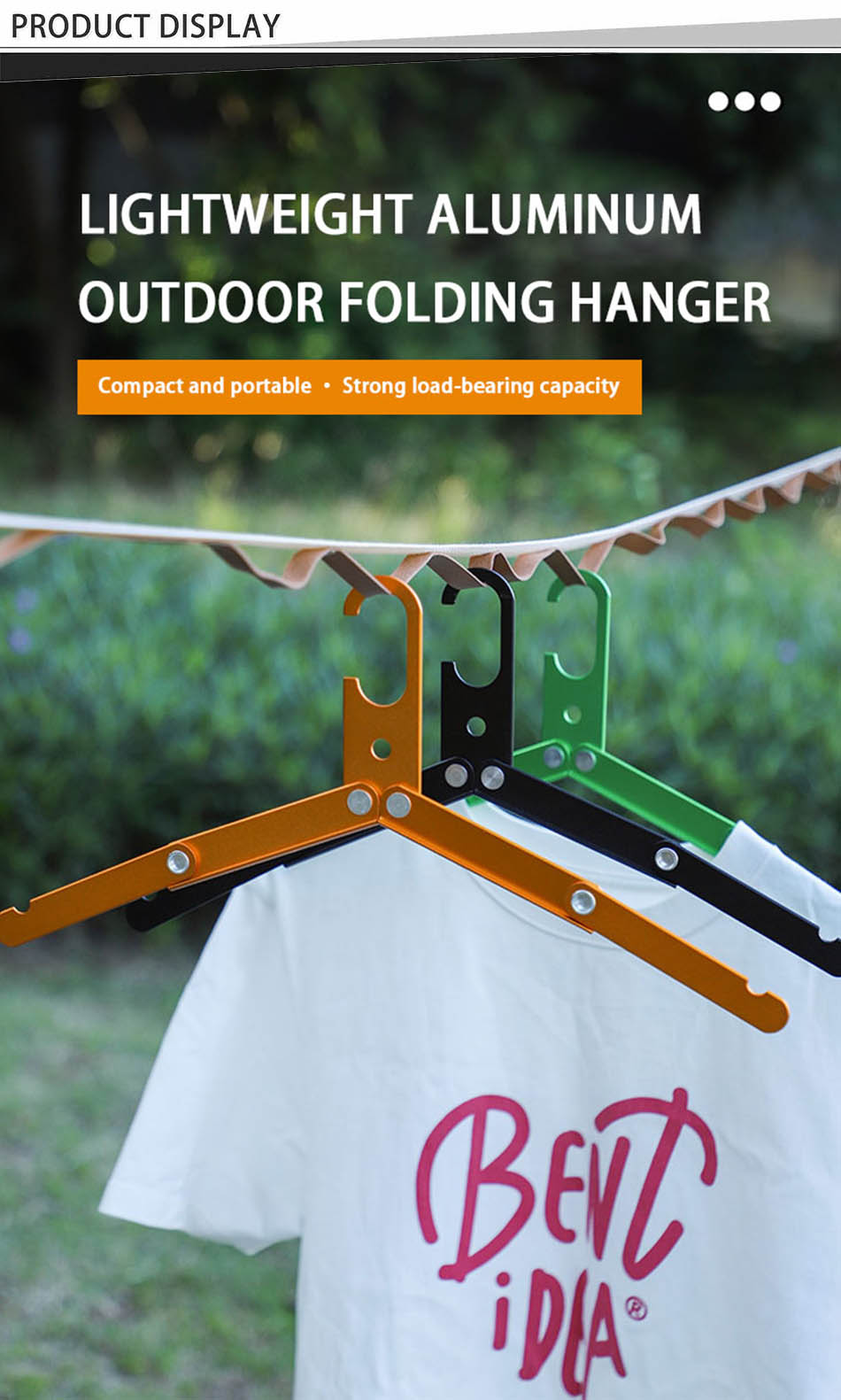 ผลิตภัณฑ์ - ไม้แขวนเสื้อพับได้แบบพกพาสำหรับตั้งแคมป์กลางแจ้งนี้ทำจากอะลูมิเนียมอัลลอยด์ มีน้ำหนักเบา กะทัดรัด และทนทาน เหมาะสำหรับแขวนเสื้อผ้าขณะตั้งแคมป์ เดินป่า หรือเดินทาง
