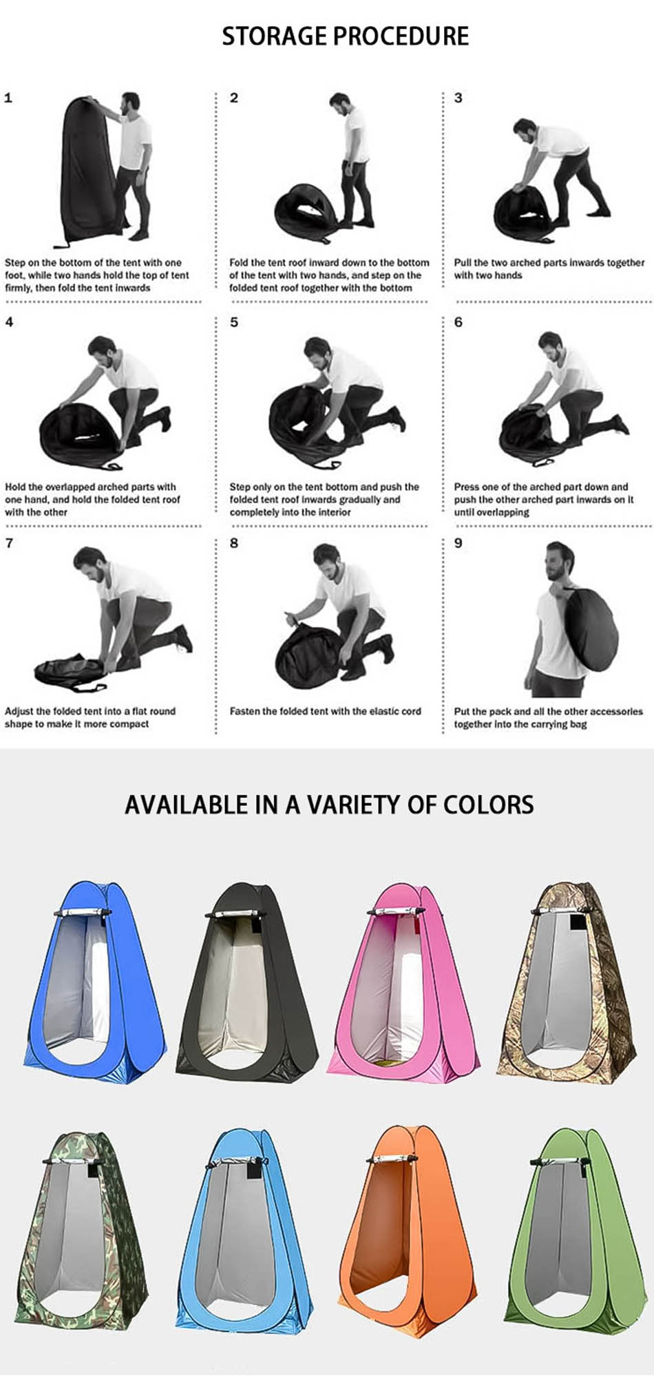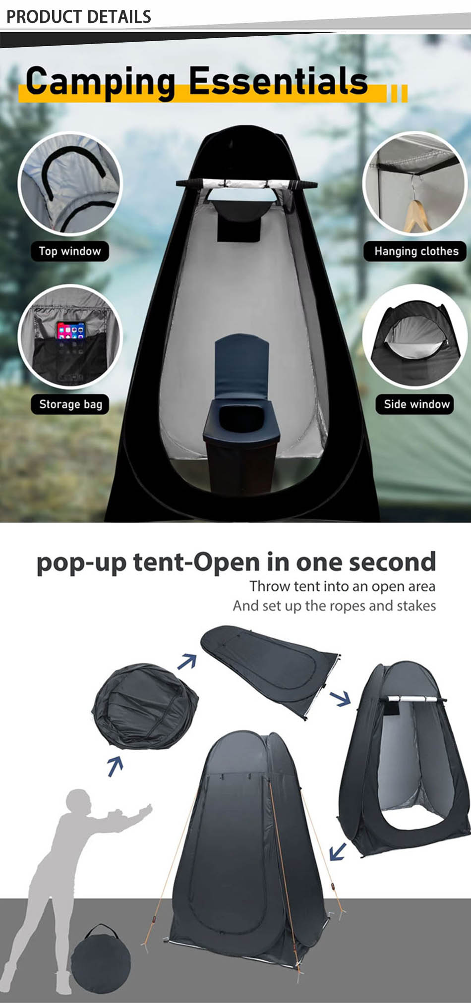 ผลิตภัณฑ์ - เต็นท์อาบน้ำแบบป๊อปอัพพกพาสำหรับการตั้งแคมป์กลางแจ้งนี้ให้ความเป็นส่วนตัวทันทีสำหรับการแต่งตัว เปลี่ยนเสื้อผ้า หรือใช้เป็นห้องน้ำ มีน้ำหนักเบา ติดตั้งง่าย และใช้งานได้หลากหลาย