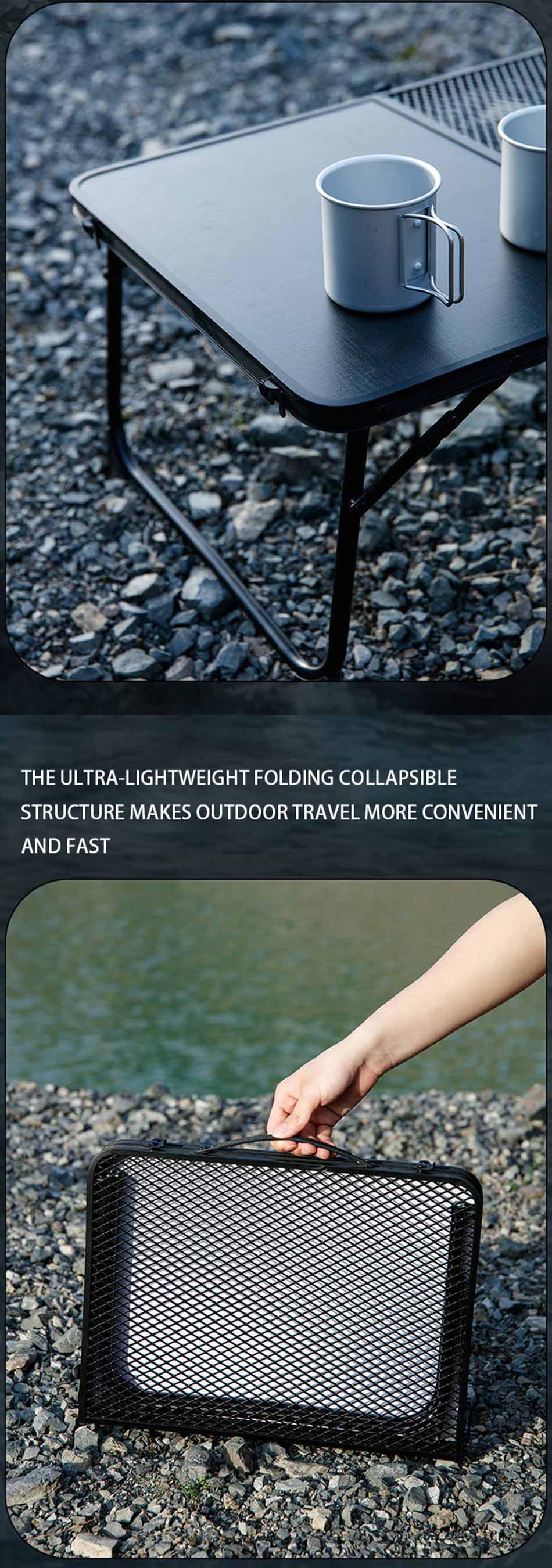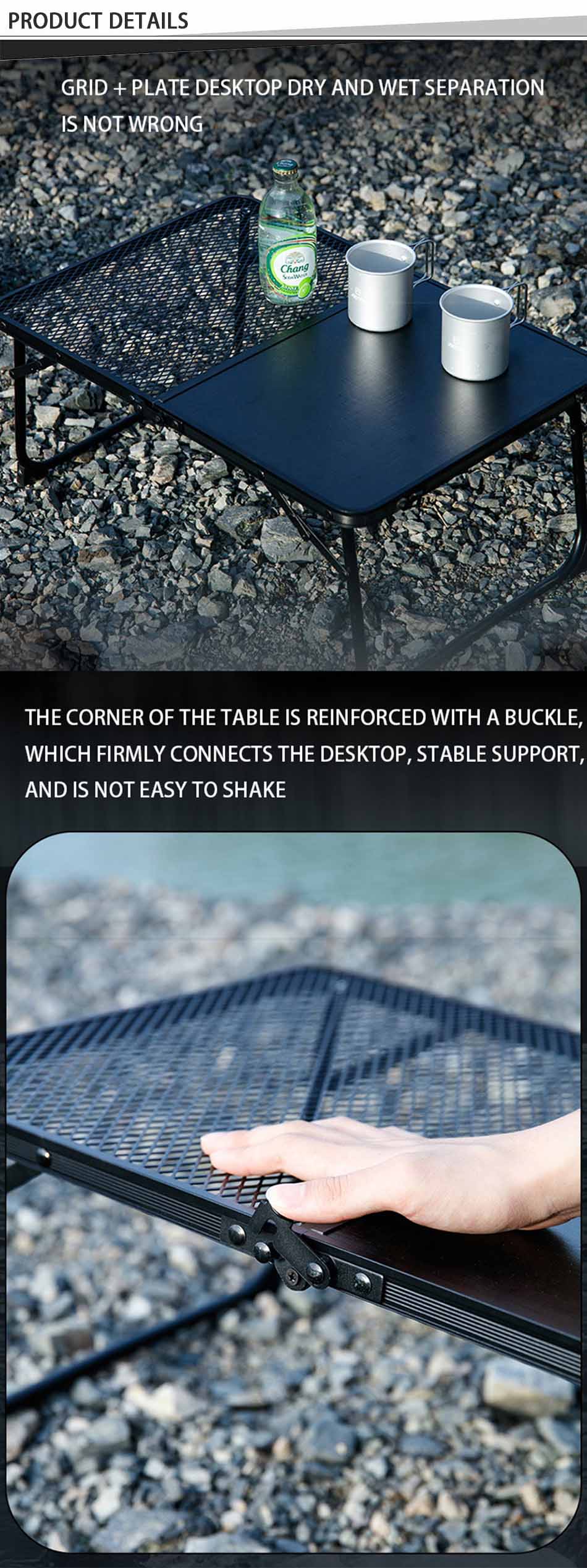 ผลิตภัณฑ์ - เฟอร์นิเจอร์สวนกลางแจ้ง โต๊ะตั้งแคมป์แบบพกพาตาข่ายน้ำหนักเบาพิเศษ มีโครงอะลูมิเนียมทนทาน การออกแบบพับ IGT แบบกะทัดรัด และพื้นผิวตาข่ายที่ระบายอากาศได้ดี เหมาะสำหรับใช้กลางแจ้งอย่างหลากหลาย