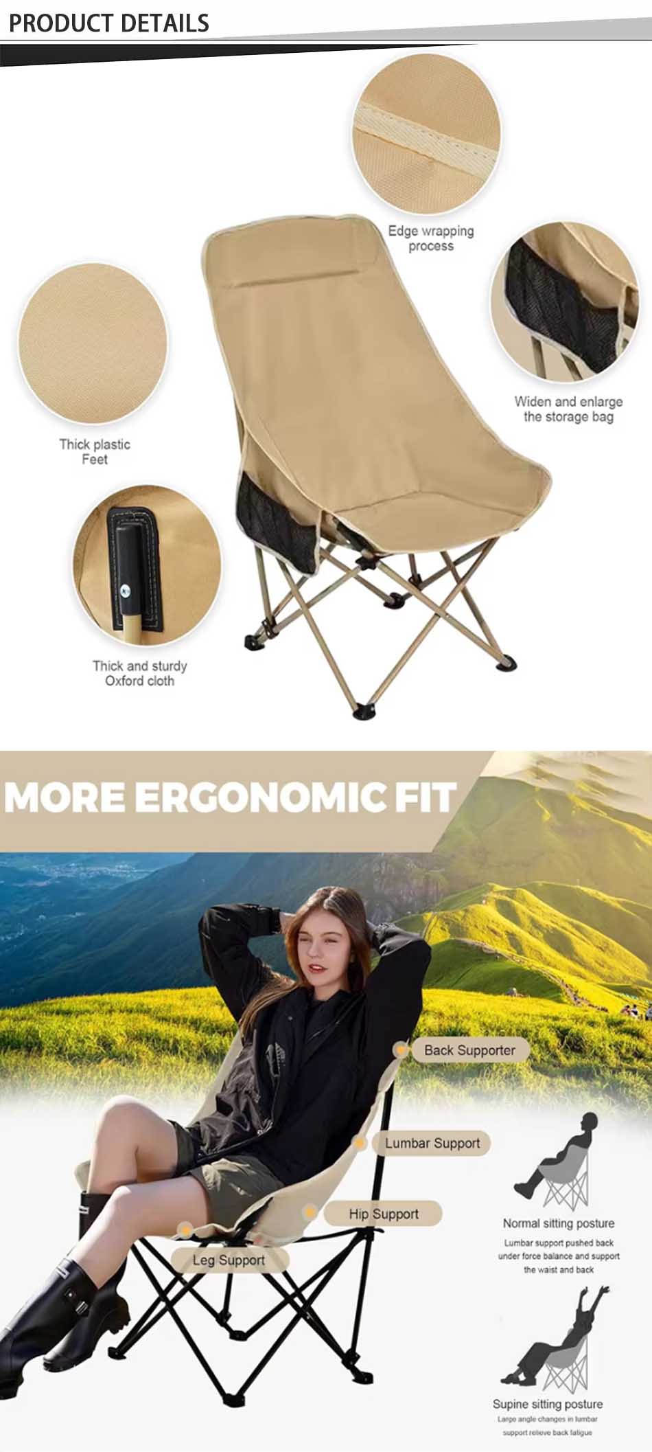 เก้าอี้พับเหล็กน้ำหนักเบาแบบสั่งทำ เก้าอี้ตั้งแคมป์กลางแจ้งแบบ Moon Chair
