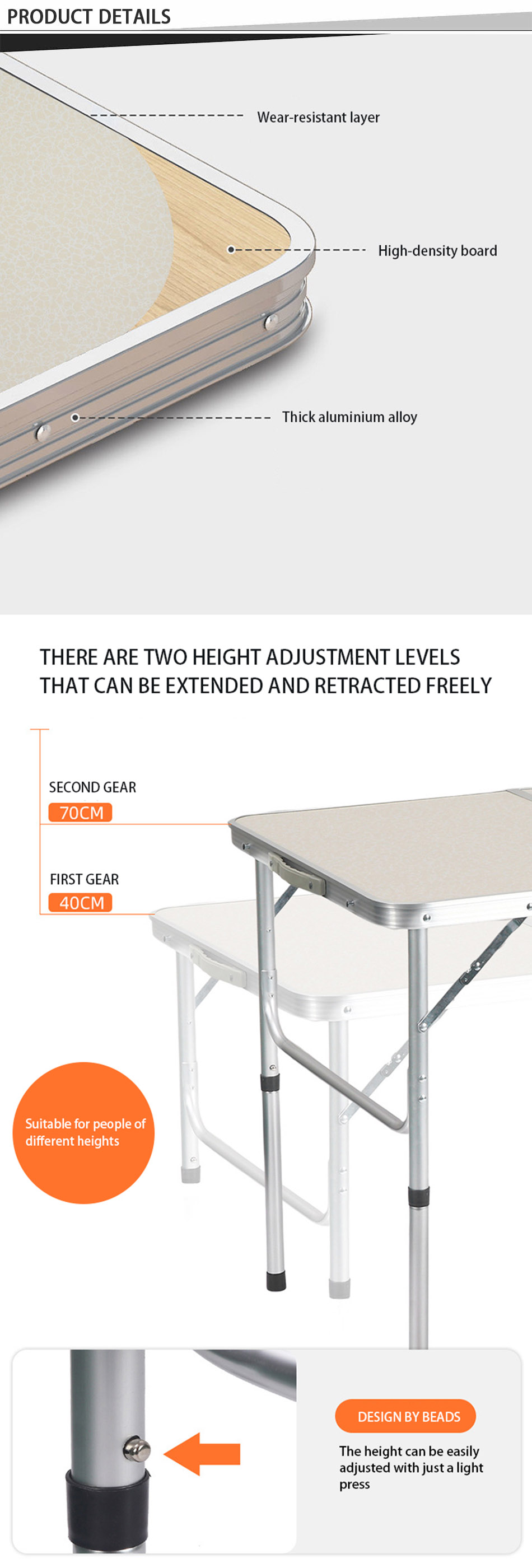 ผลิตภัณฑ์ - โต๊ะพับแบบพกพาที่ทำจากอะลูมิเนียมอัลลอยด์มีคุณสมบัติปรับความสูงได้และใช้งานได้หลากหลาย เหมาะสำหรับปิกนิกกลางแจ้ง วันที่ชายหาด บาร์บีคิว การตั้งแคมป์ และการเดินทางพร้อมการตั้งค่าที่ง่ายดาย