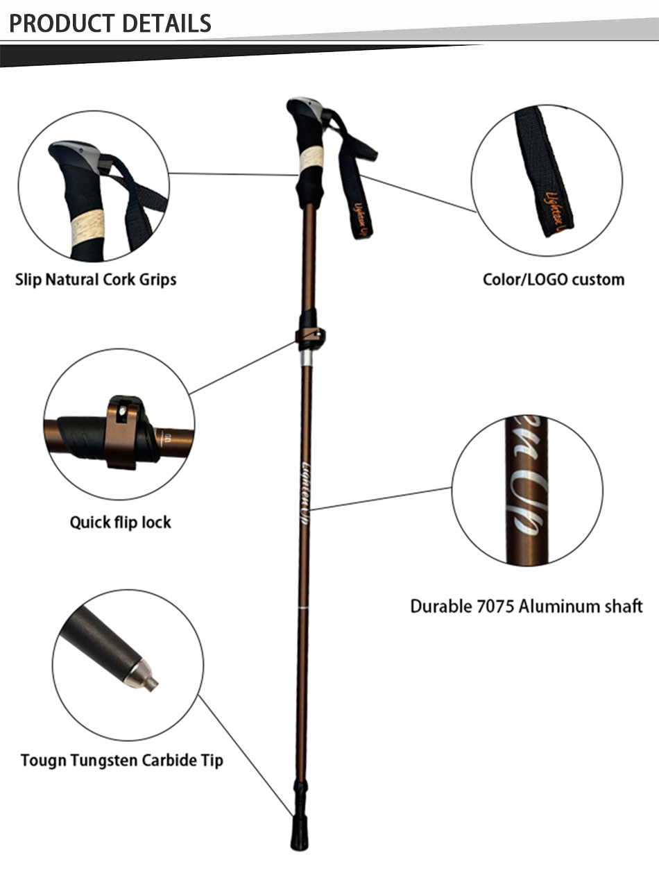 feistel ขายส่งอลูมิเนียมอัลลอยด์ไม้ก๊อก EVA จับล็อคอย่างรวดเร็วพับเสาเดินป่า