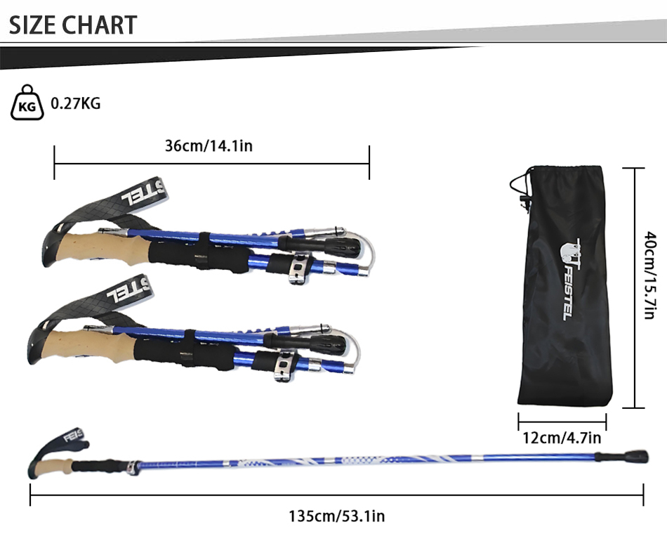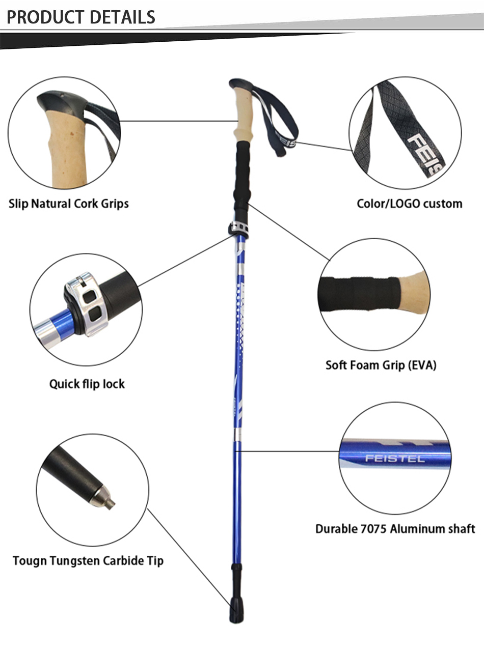 feistel ขายส่งอลูมิเนียมอัลลอยด์ไม้ก๊อก EVA จับล็อคอย่างรวดเร็วพับเสาเดินป่า