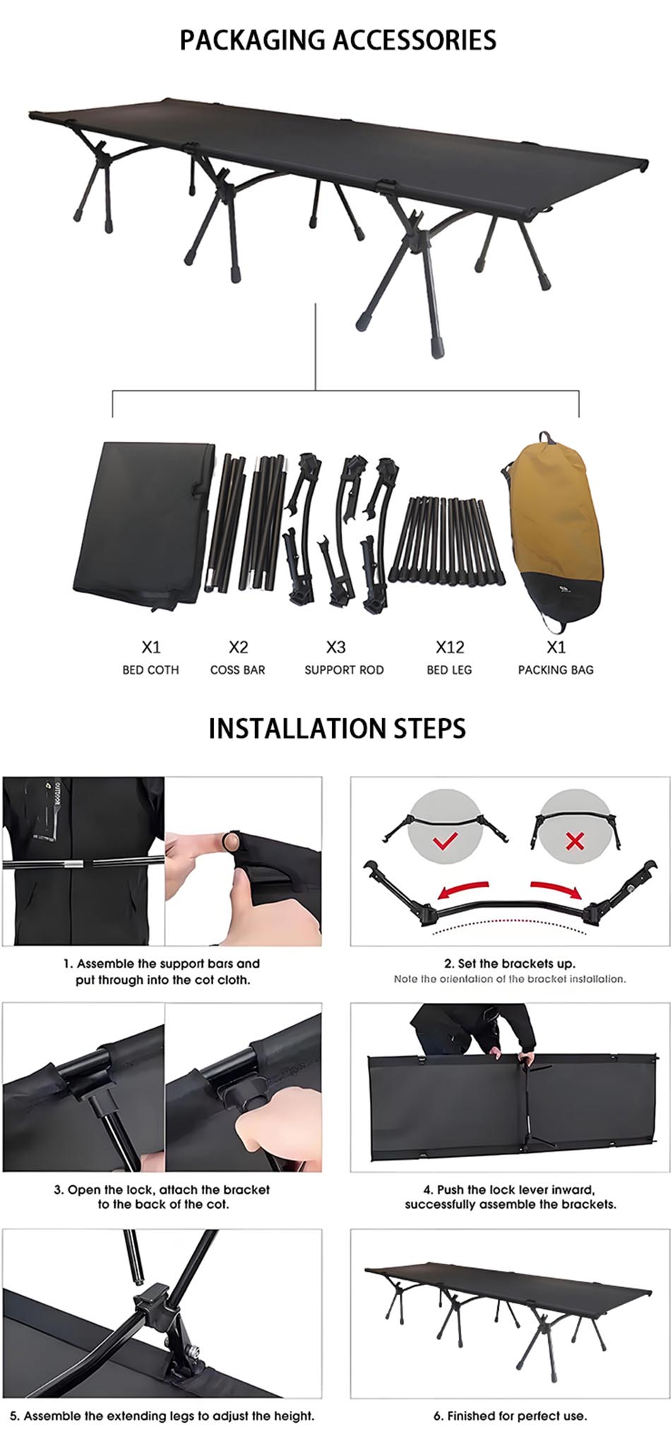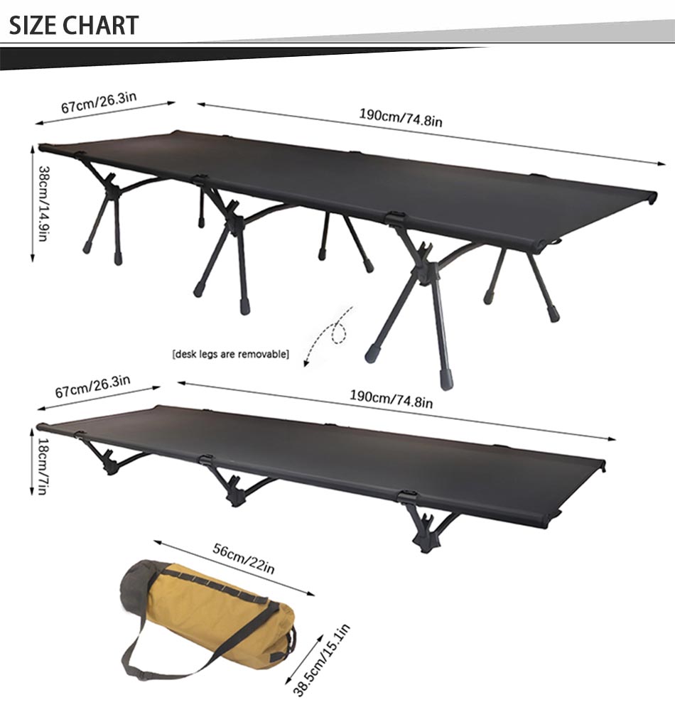 ผลิตภัณฑ์ - เตียงนอนเดินทางพร้อมอุปกรณ์เดินป่าราคาส่งเป็นเตียงพับสำหรับตั้งแคมป์ที่ปรับระดับความสูงได้ ให้การรองรับที่แข็งแรง พกพาสะดวก และพักผ่อนได้อย่างสบายสำหรับการผจญภัยกลางแจ้ง