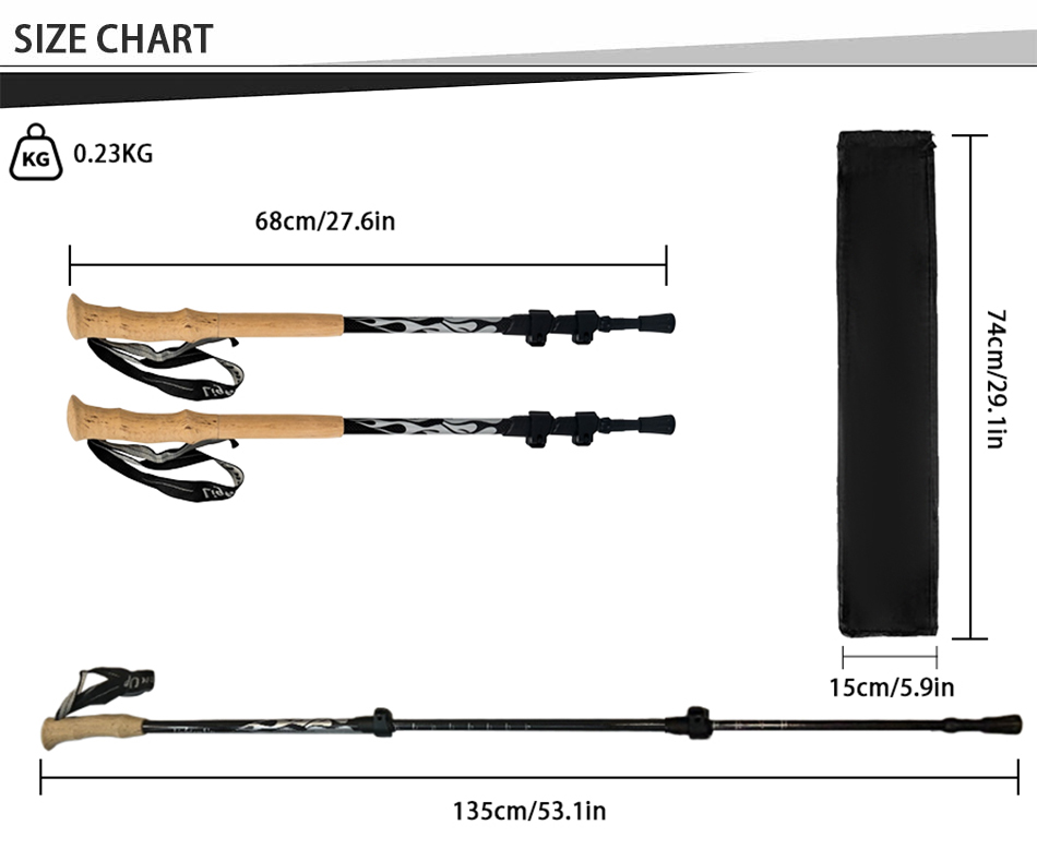 [ขนาดกะทัดรัดและเป็นมิตรกับการเดินทาง ไม้เท้าเดินป่า [ขนาดกะทัดรัดและเป็นมิตรกับการเดินทาง สามารถจัดเก็บในกระเป๋าเดินทางได้อย่างง่ายดาย, กระเป๋าเป้สะพายหลังและกระเป๋าสัมภาระ. ไม้เท้าเดินป่ารุ่นนี้ยังมาพร้อมกับอุปกรณ์ป้องกันปลายยางที่จัดเก็บง่าย, ขั้วต่อขั้วและตะกร้าโคลน. [รุ่นใหม่และปรับปรุง! ไม้ค้ำสำหรับการเทรคกิ้งเพื่อการเทรคกิ้งมาพร้อมสายรัดบุนวมเพื่อความสบายสูงสุดและการยึดเกาะตามหลักสรีรศาสตร์. ไม่ต้องกังวลว่าเสาเทรคกิ้งจะตกลงมาอีก.